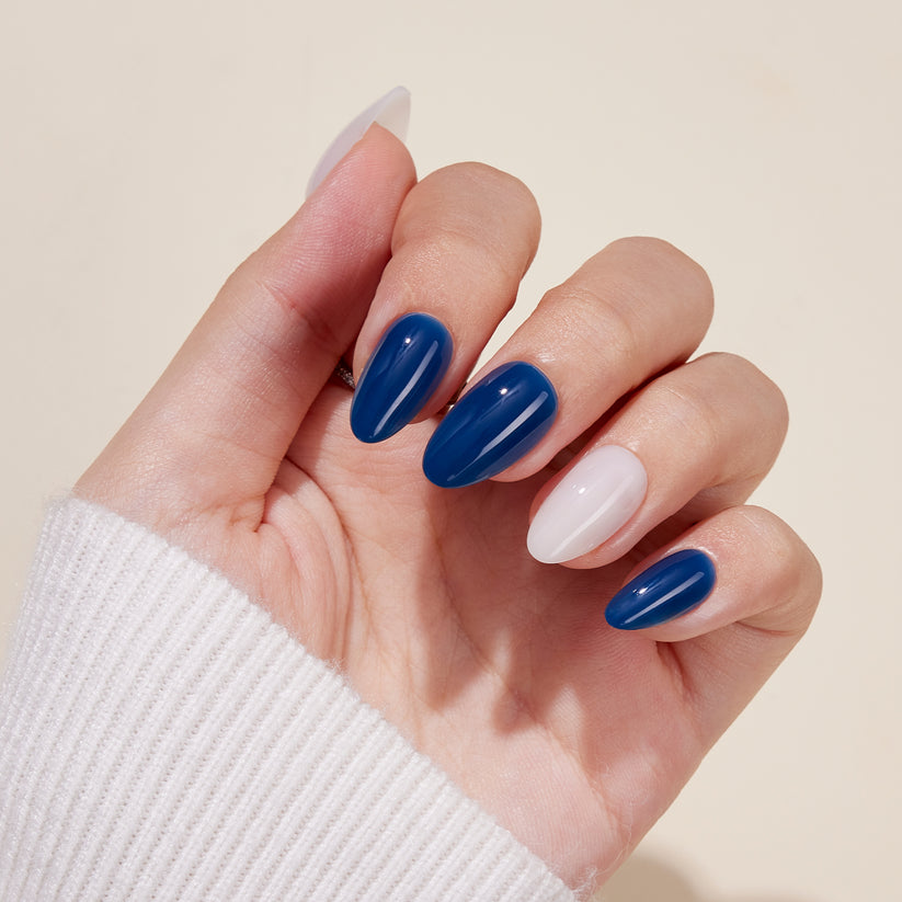 2. عبوة بديلة لأظافر الضغط القصيرة طويلة الأمد - أزرق وأبيض سادة، شكل لوزي