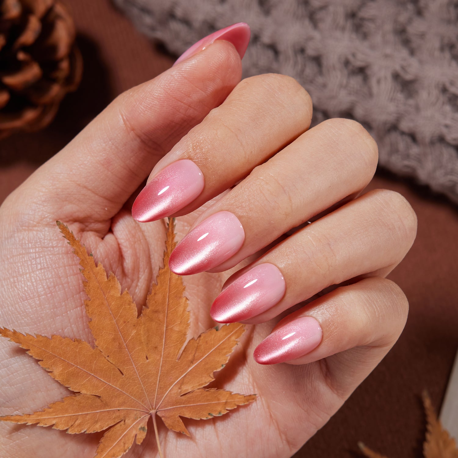 أظافر أومبري على شكل لوز، قصيرة وطويلة الأمد، بلمسة نهائية كريمية | مع 16 مقاسًا - 32 ظفرًا