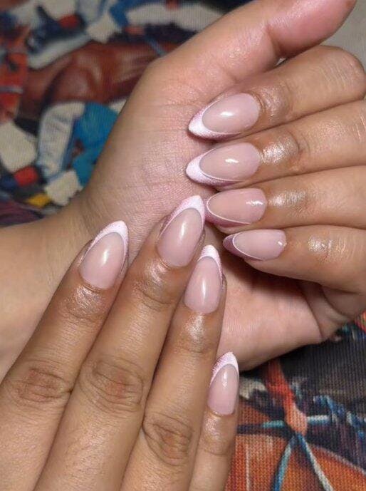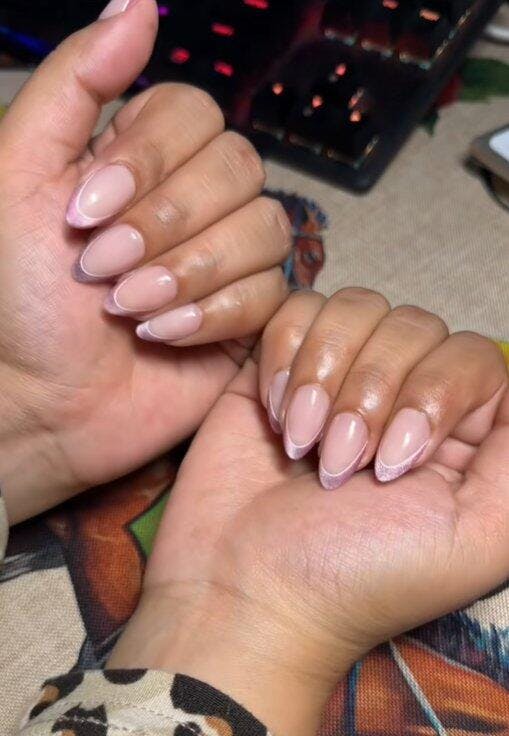 أظافر قصيرة على شكل لوز مع طرف فرنسي لامع بلون ذهبي وردي | 16 مقاسًا - 32 ظفرًا، غراءان، زيت بشرة، تدوم حتى أسبوعين