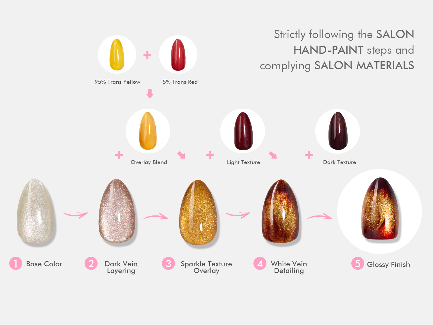 To enhance the glamours of nails, VSALON boldly adopts various materials in finish, and insists multi-painting production procedures.