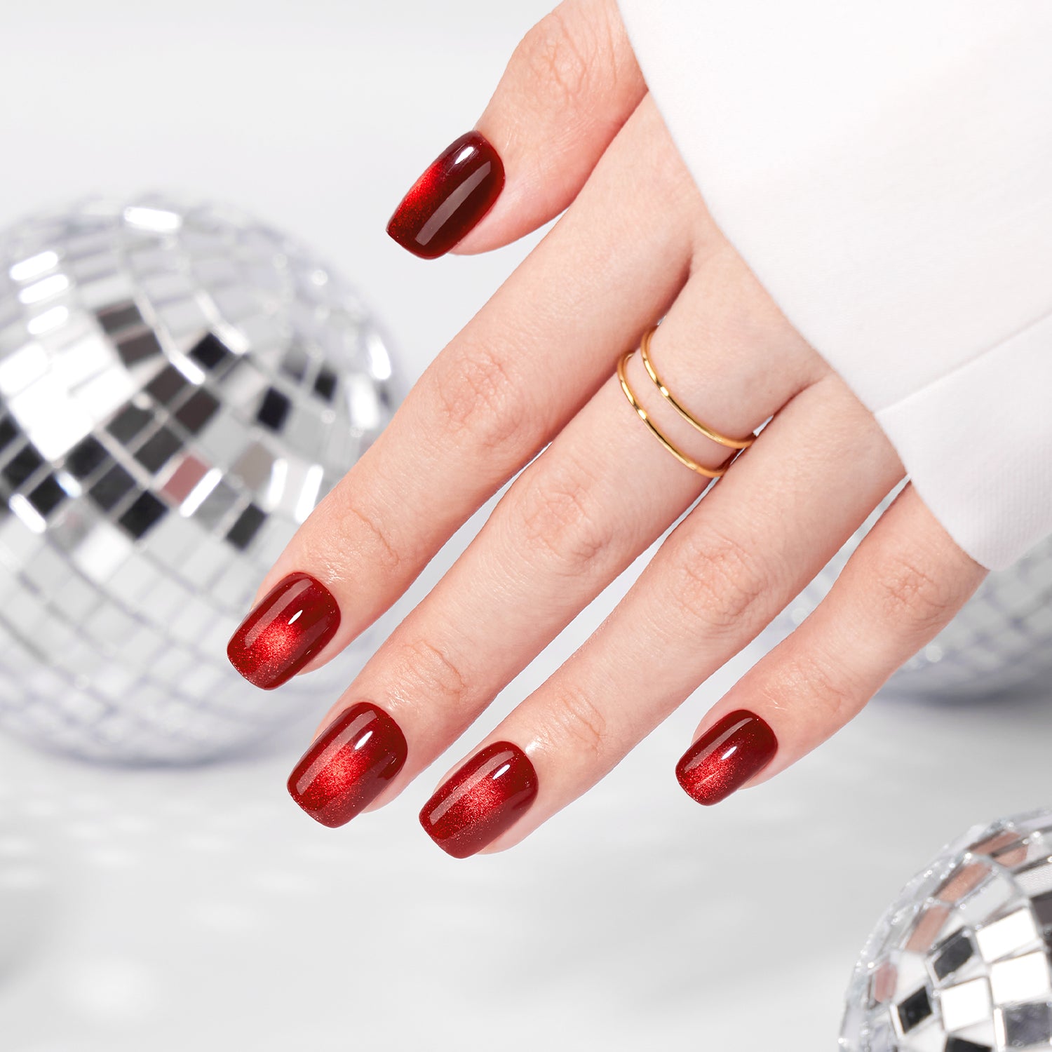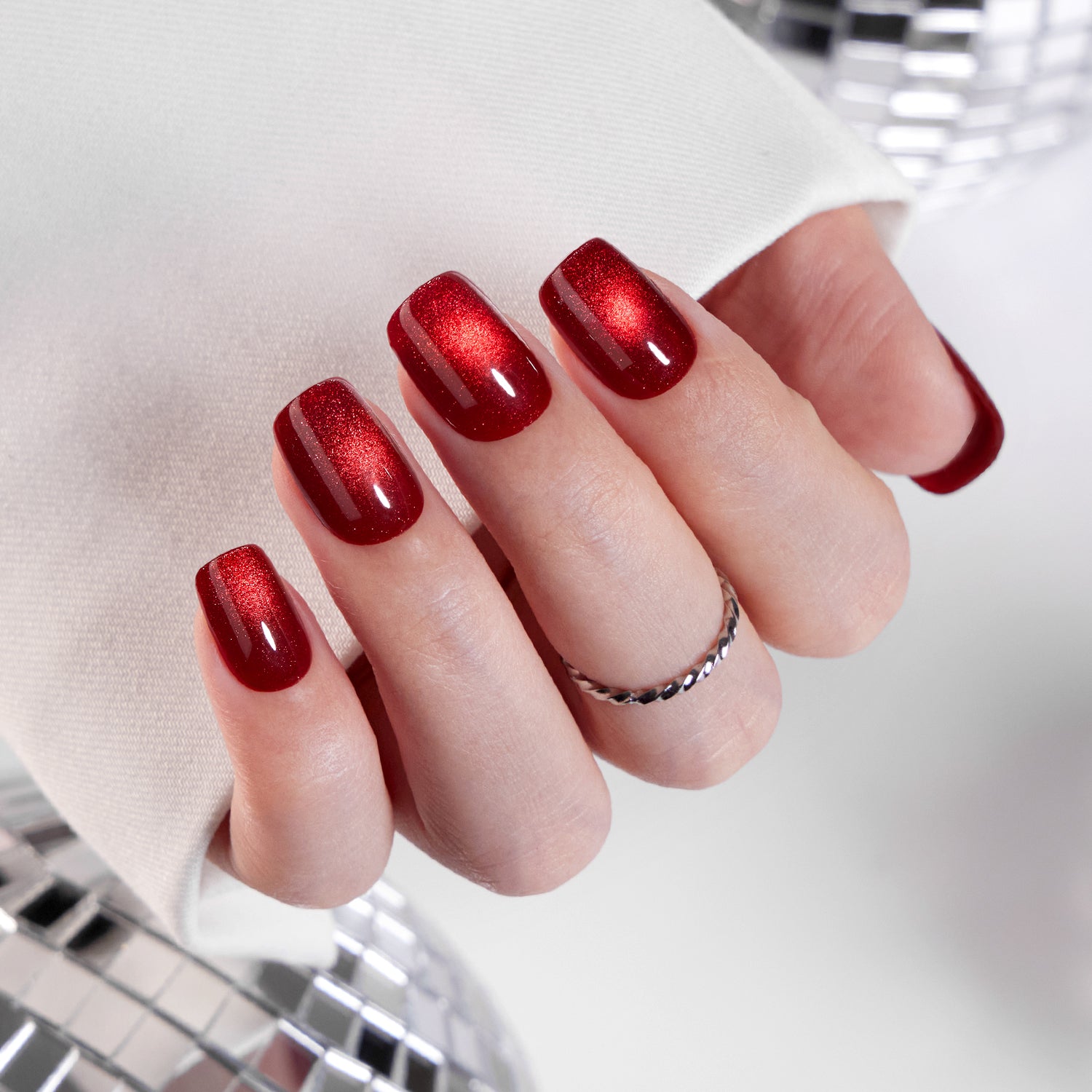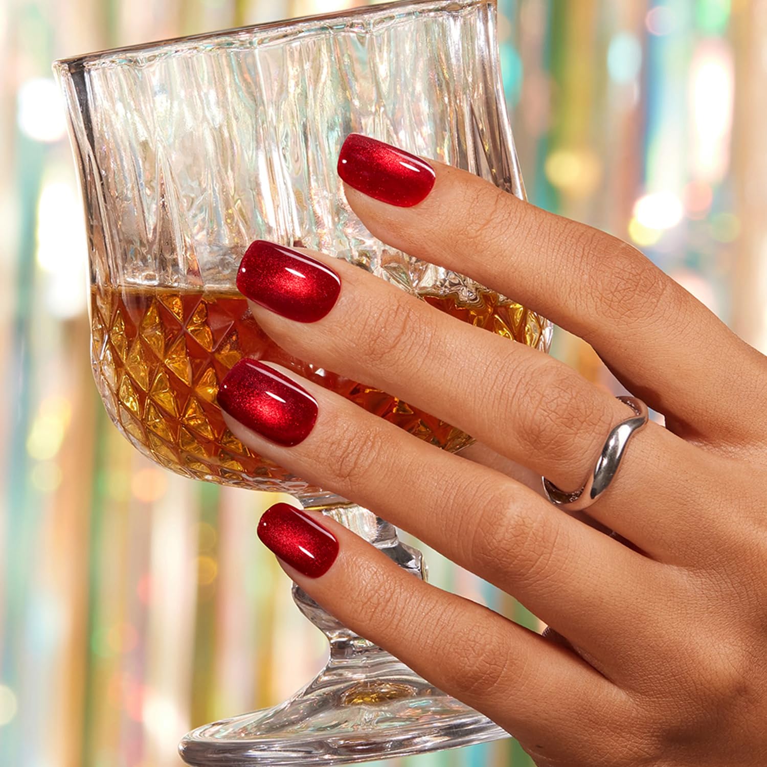Cherry Red Cat Eye Press On Nails| 32 Nails in 16 Sizes, 2 Glues