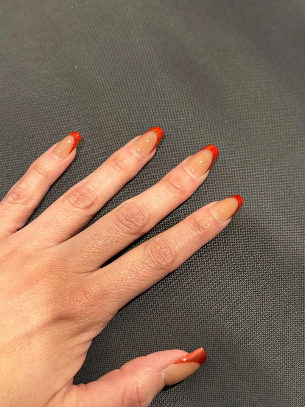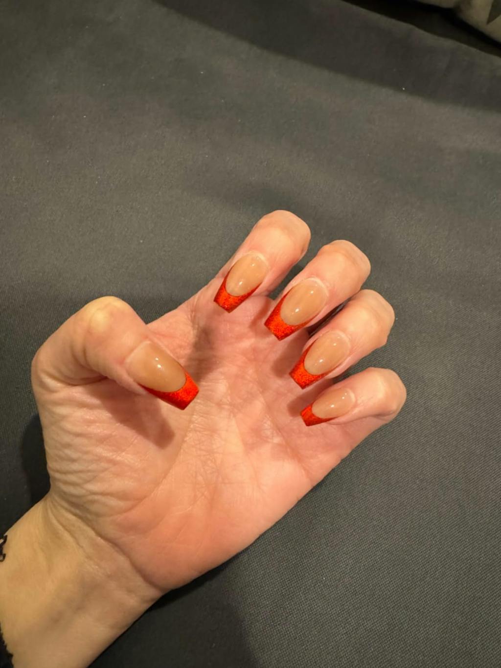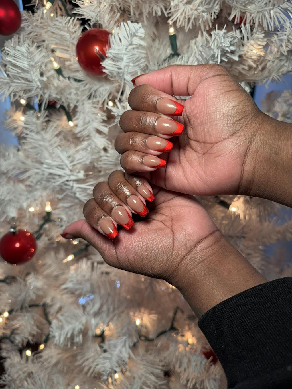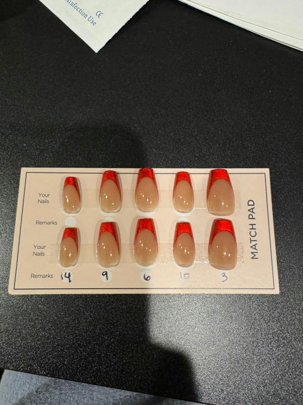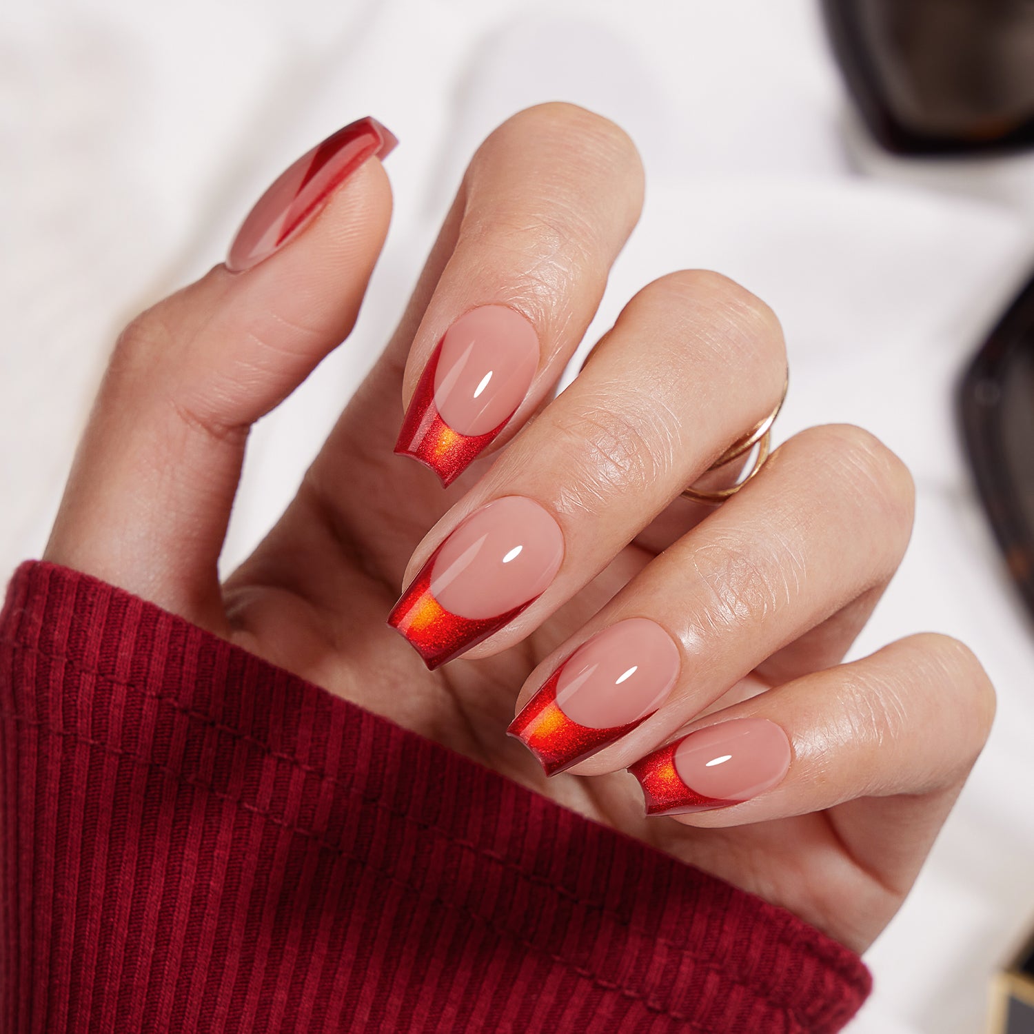 Coffin Press On Nails | Apple Red French Tips |16 Sizes-42 Nails, 3 Glues