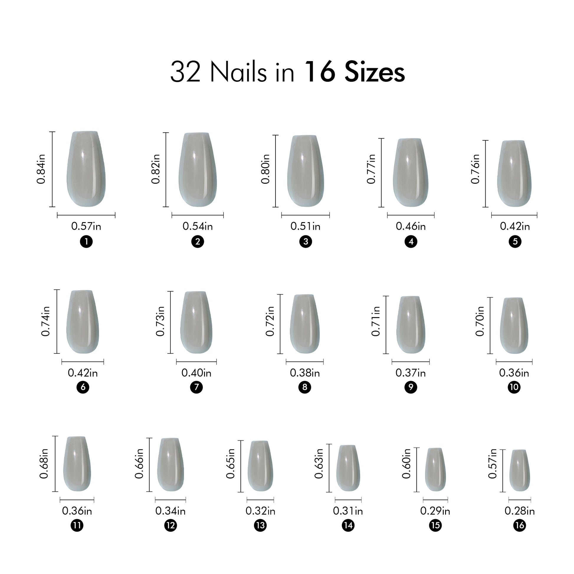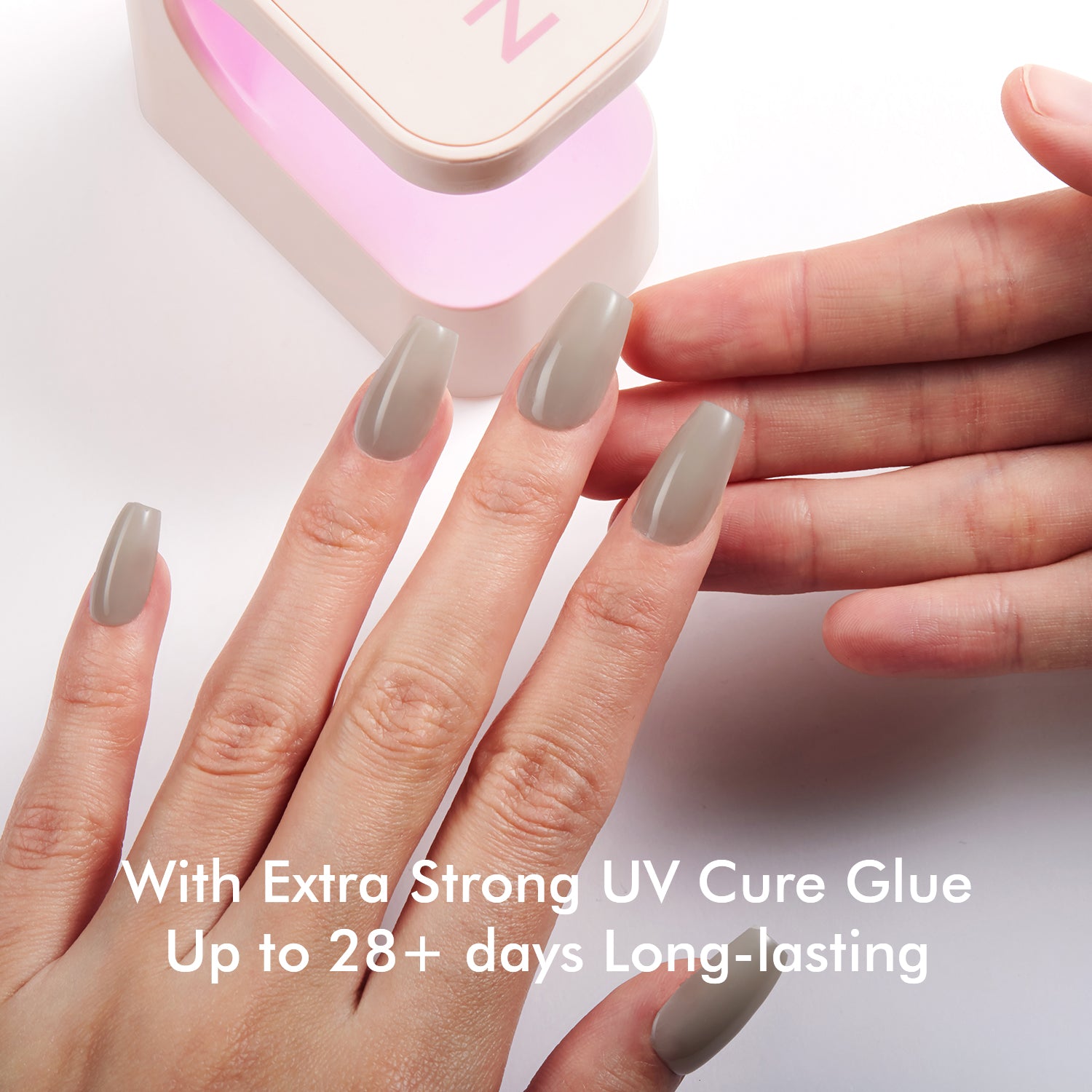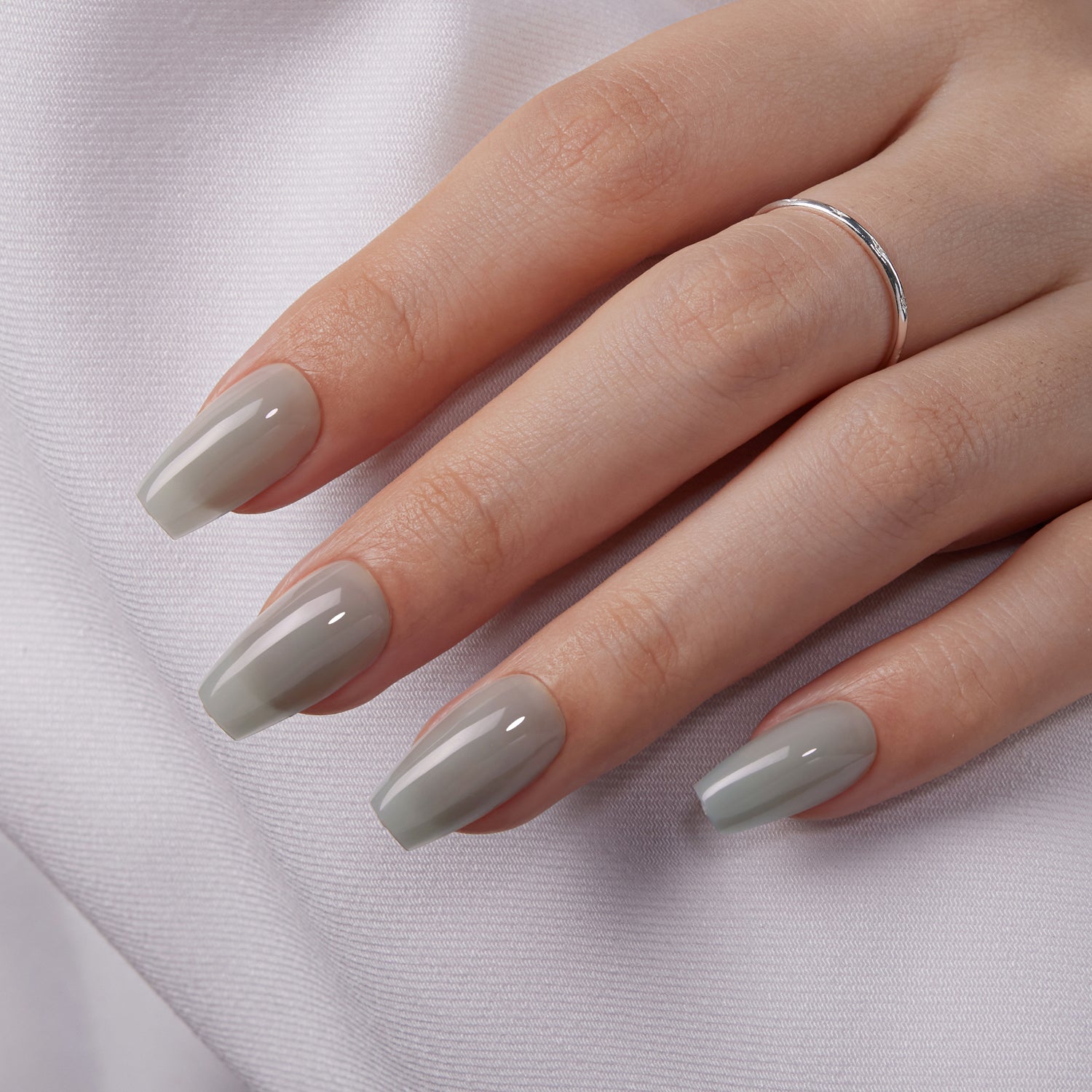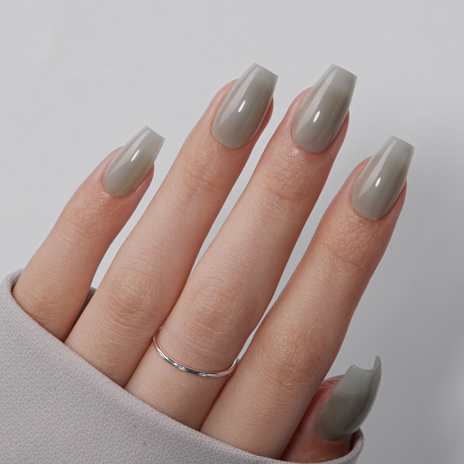 Press On Nails Grey Short Coffin Shape |16 Sizes-32 Nails 3 Glues