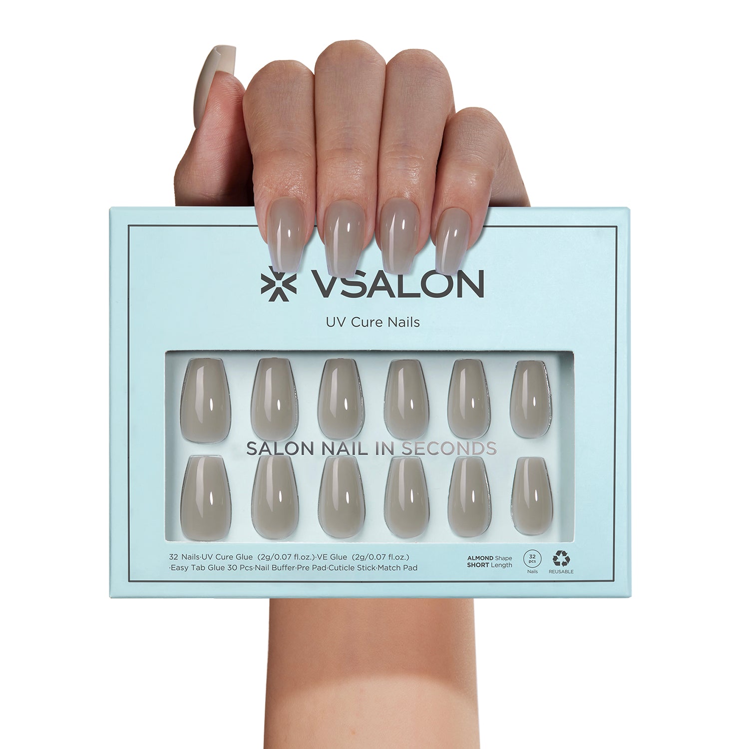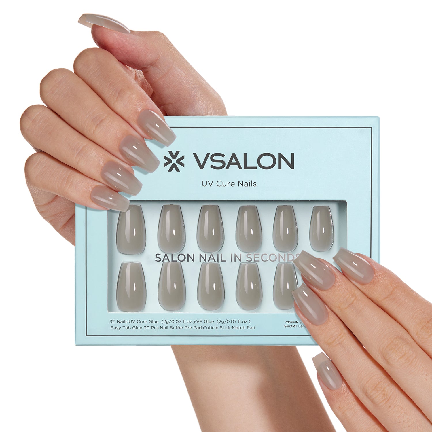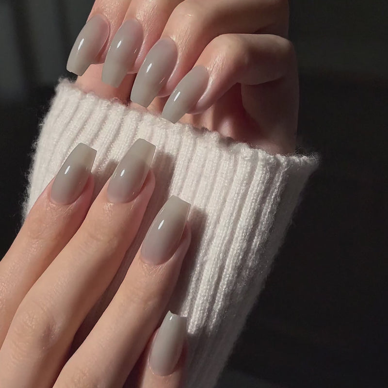 Press On Nails Grey Short Coffin Shape |16 Sizes-32 Nails 3 Glues