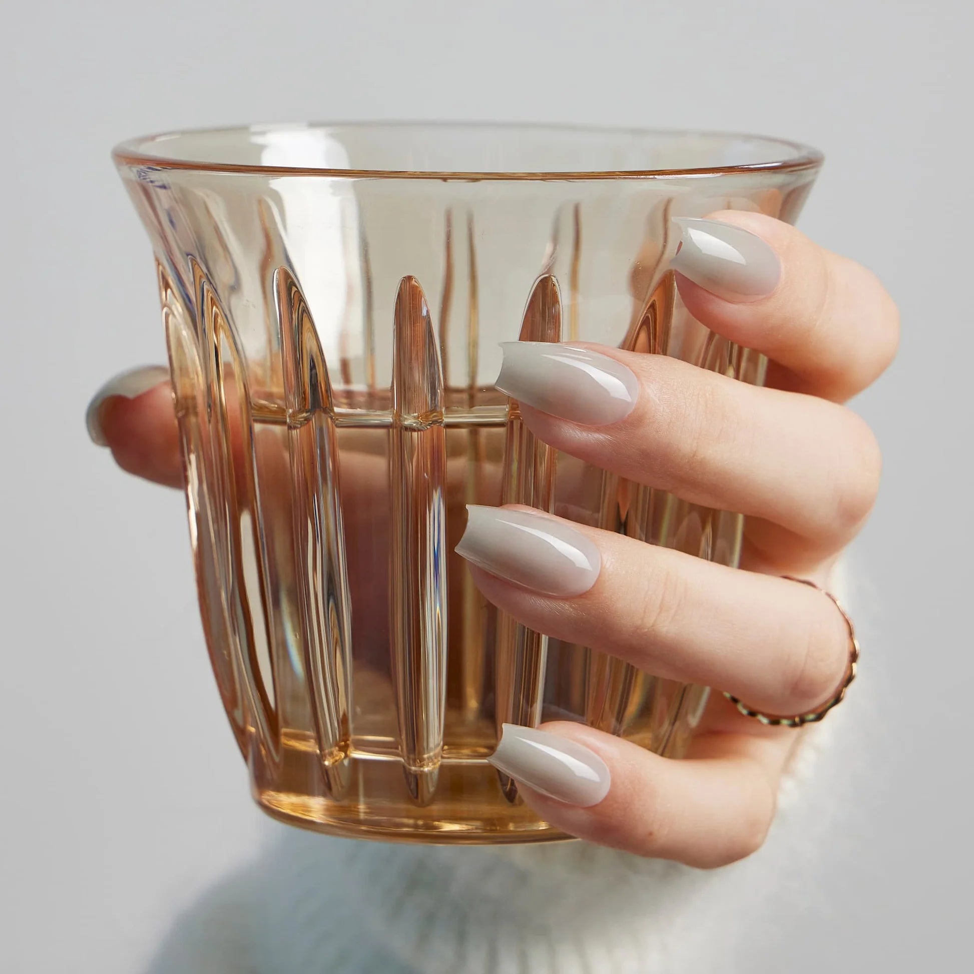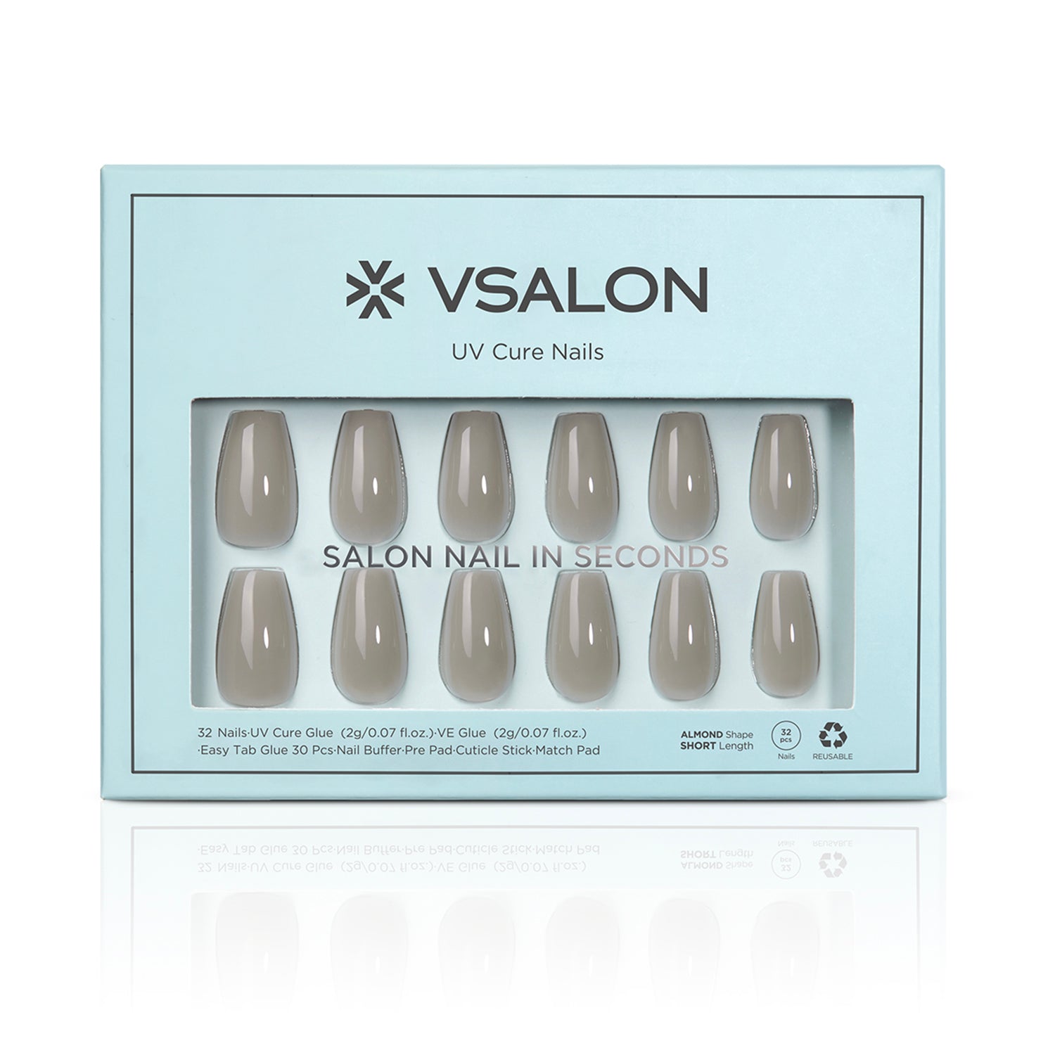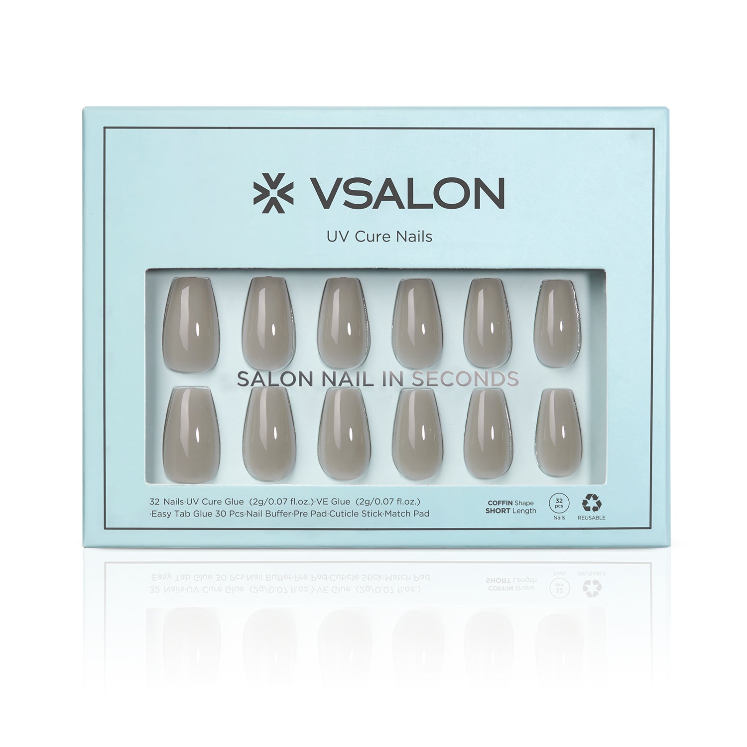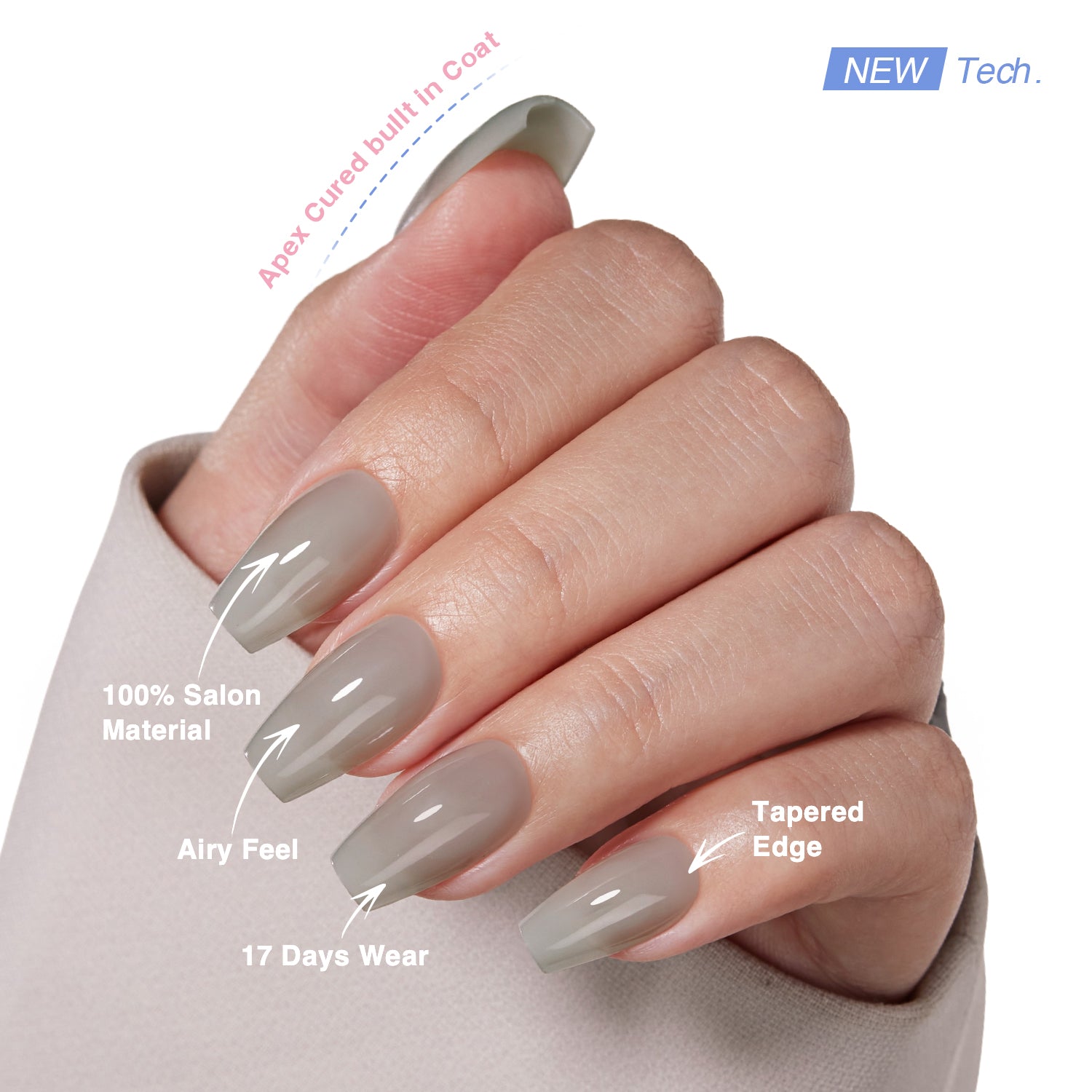 Press On Nails Grey Short Coffin Shape |16 Sizes-32 Nails 3 Glues