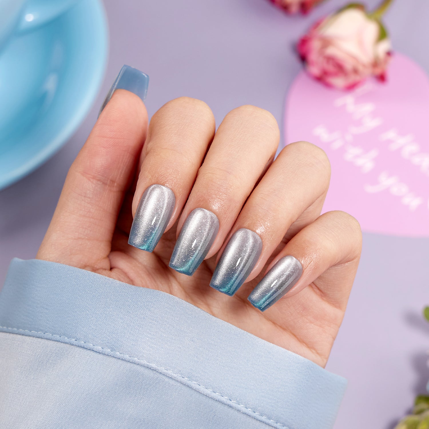 Crafted with 100% salon-grade UV gel, VSALON press-on nails deliver a glossy, professional finish that feels fresh from the salon. Enjoy a strong hold of up to 14 days with glue or a flexible 3-day wear with easy tabs—perfect for your weekly style refresh. Featuring ergonomic tapered edges, each nail blends seamlessly with your natural nail for a secure, bubble-free fit. Every set includes cuticle oil and essential tools to keep your nails healthy, hydrated, and protected.