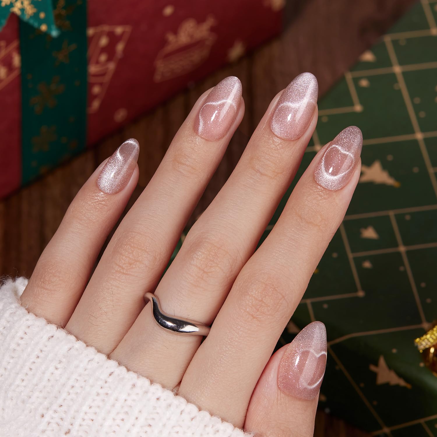 IN DEMAND💖💘| Cupid Pearl Cat Eye Press On Nails 25+ Days Wear | with 16 Sizes-32 Nails, 3 Glues
