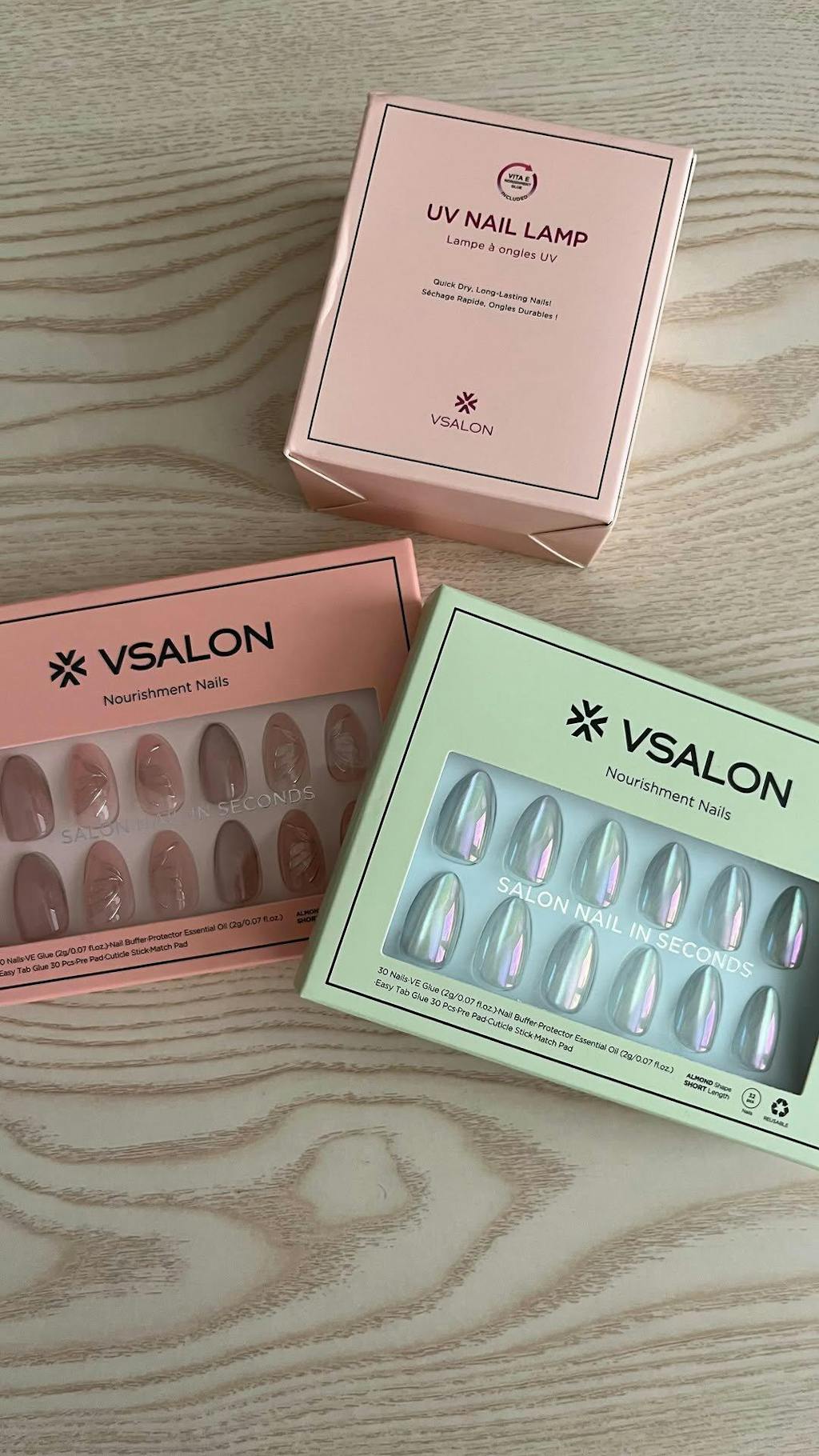 Crafted with 100% salon-grade UV gel, VSALON press-on nails deliver a glossy, professional finish that feels fresh from the salon. Enjoy a strong hold of up to 14 days with glue or a flexible 3-day wear with easy tabs—perfect for your weekly style refresh. Featuring ergonomic tapered edges, each nail blends seamlessly with your natural nail for a secure, bubble-free fit. Every set includes cuticle oil and essential tools to keep your nails healthy, hydrated, and protected.
