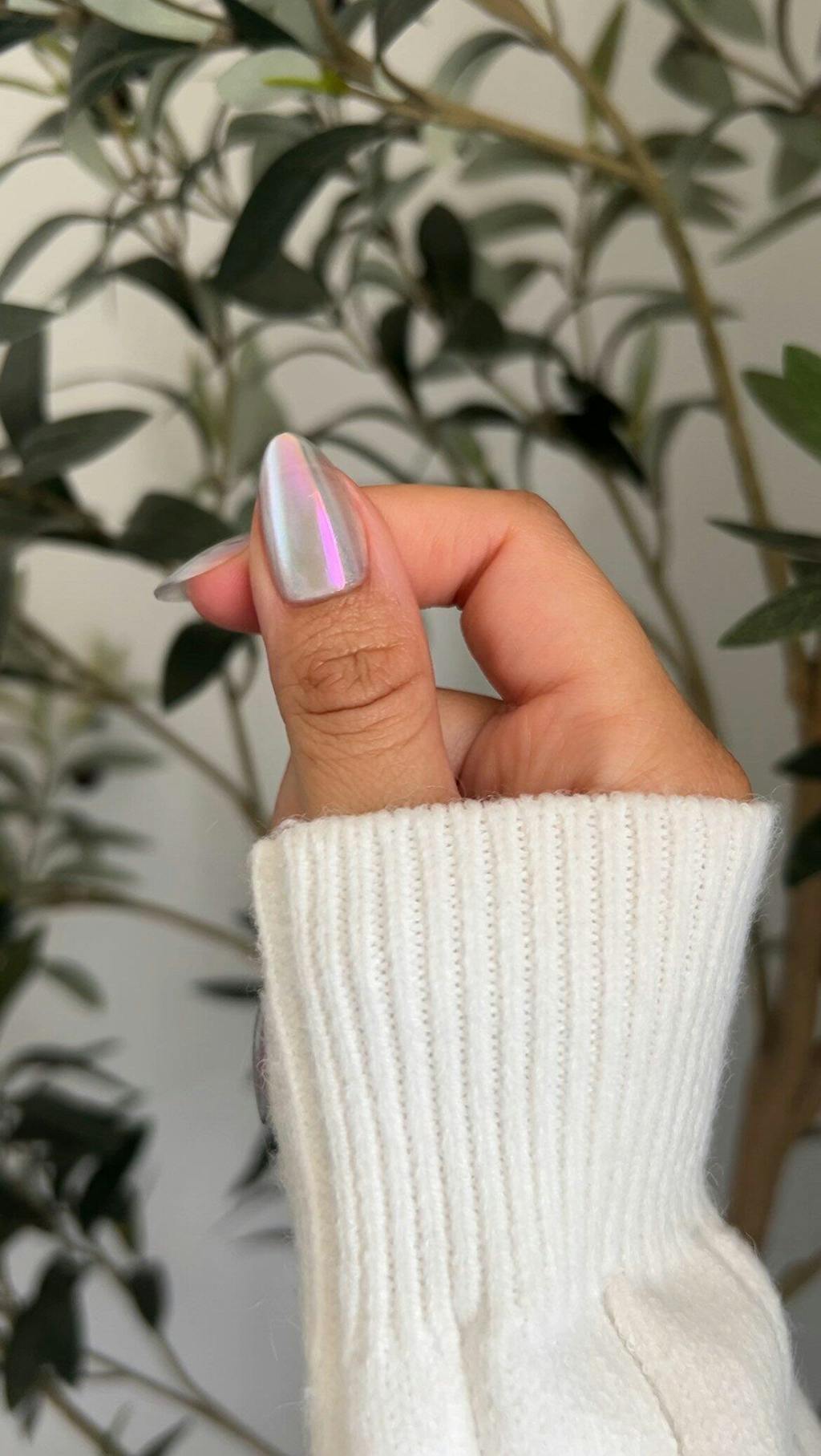 Iridescent Mint Cat Eye – Featuring a soft mint base with a glowing iridescent cat-eye effect, these press-on nails shift beautifully under different light angles, creating a luminous, multi-color sheen. Fresh, playful, and eye-catching—perfect for everyday wear or as a unique gift.