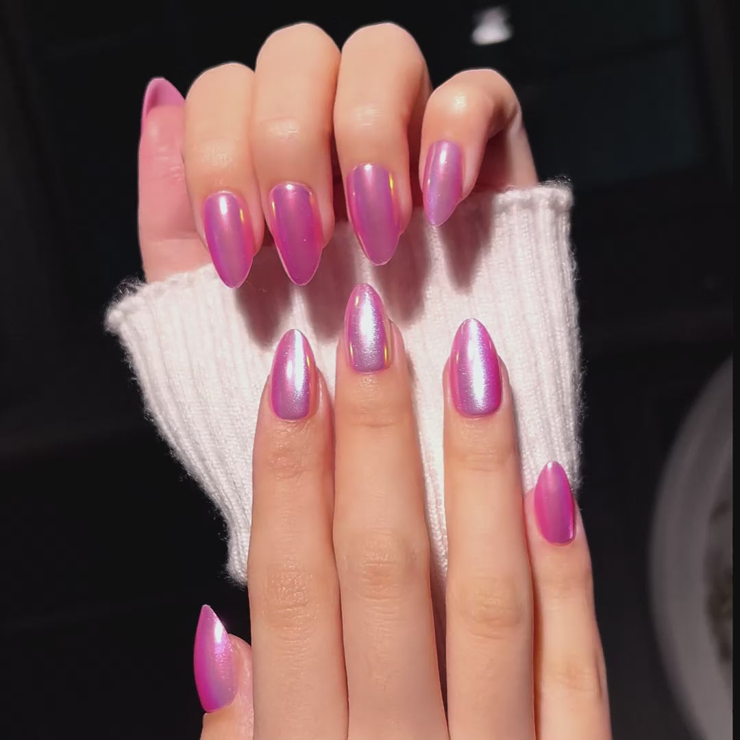 Soft Salon UV Gel Holographic Cat Eye Press On | 32 PCS in 16 Sizes| VE Glue, Easy Tab Glue, Cuticle Oil, Prep Kit