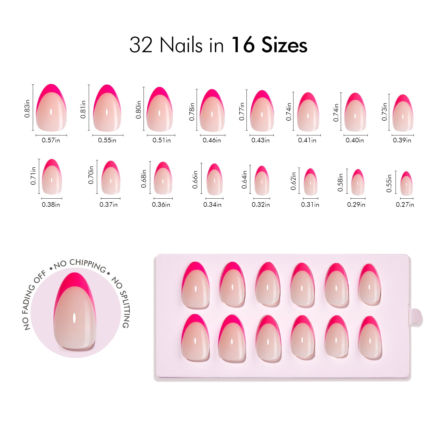 · 32 Nail Tips in 16 Sizes