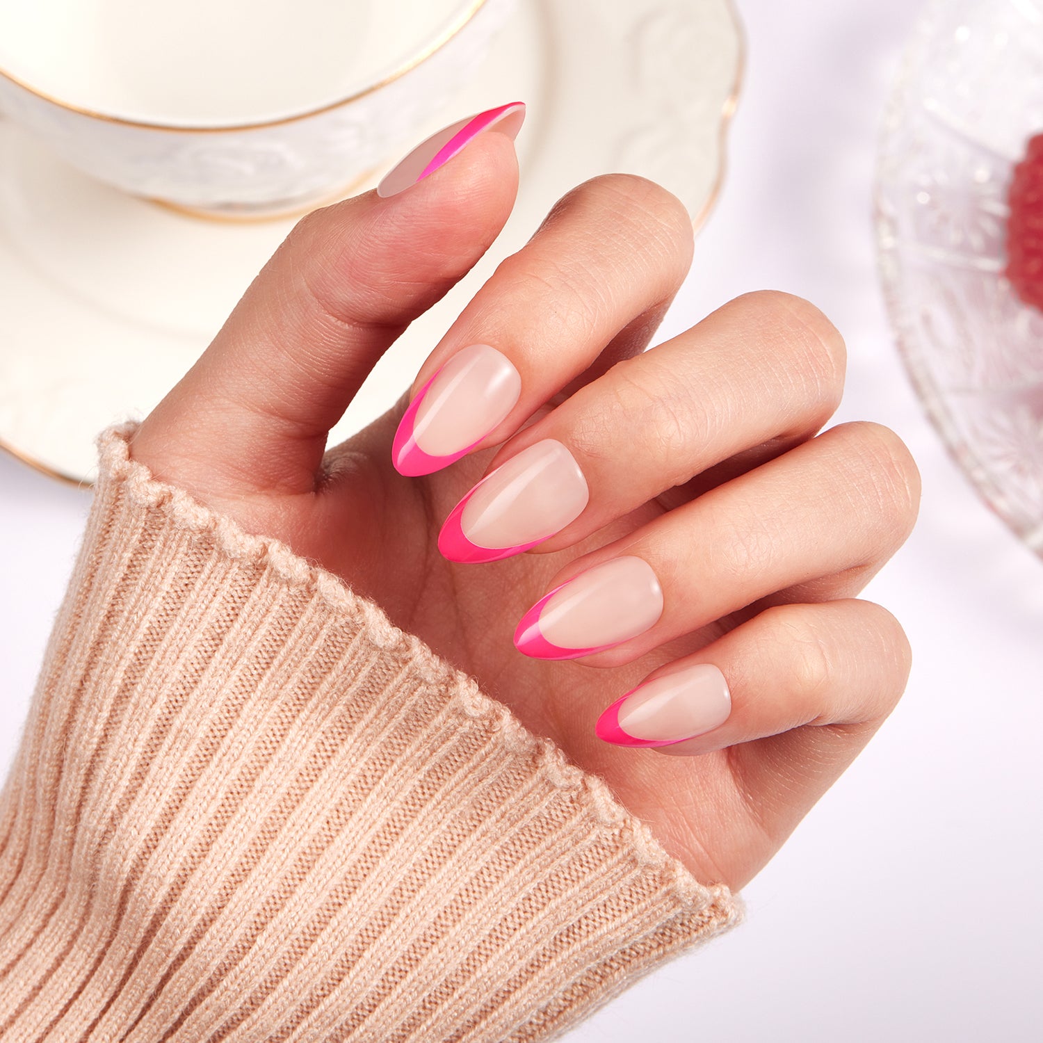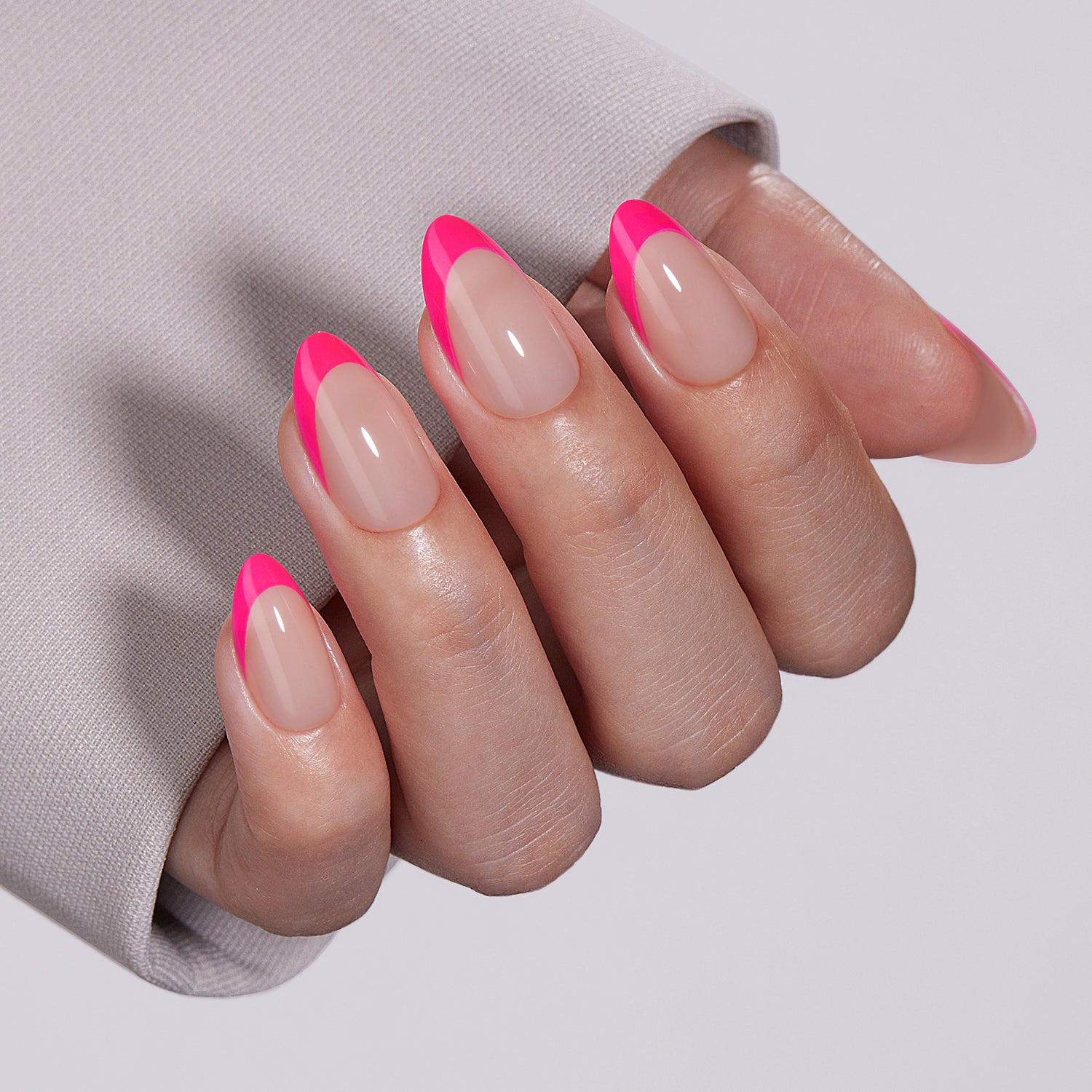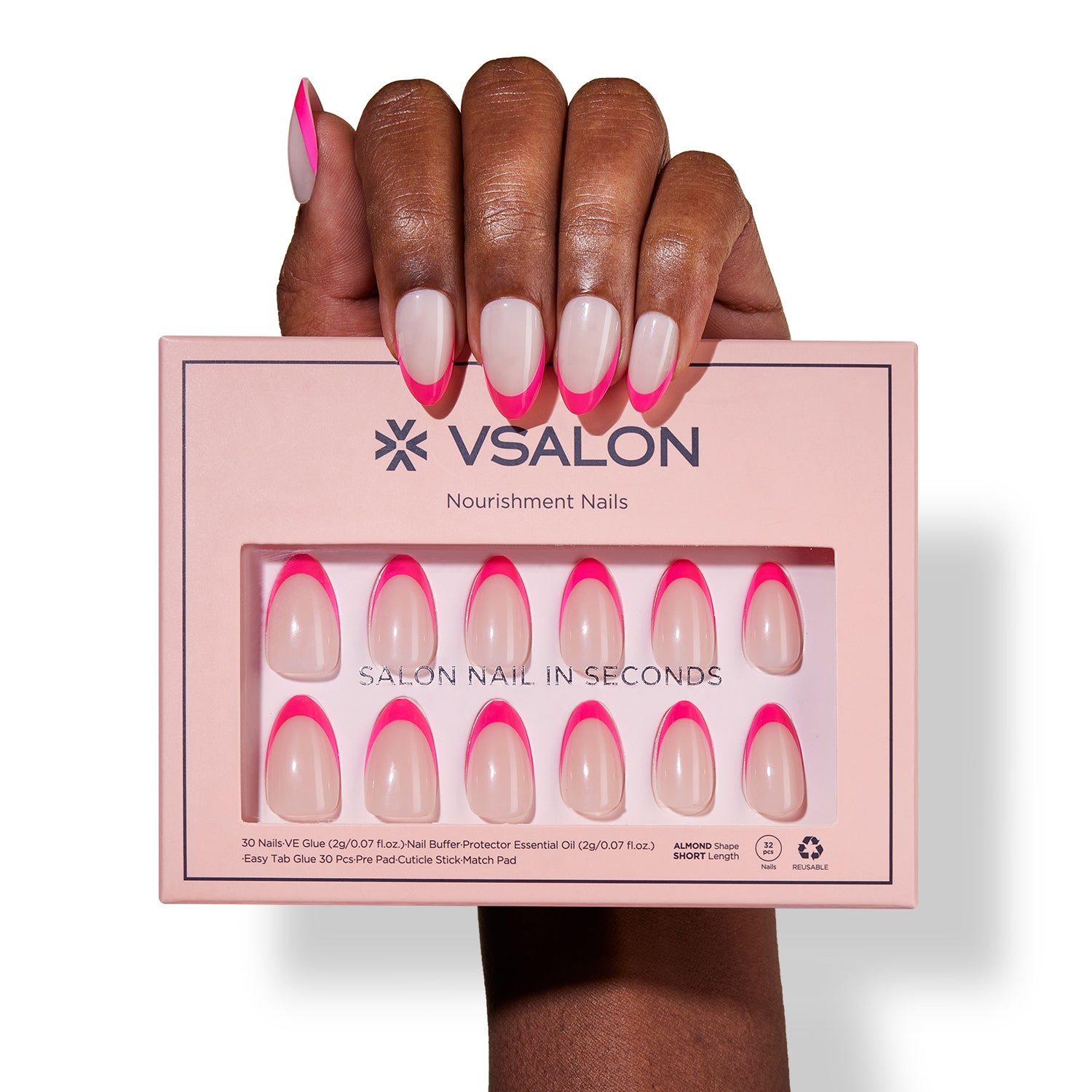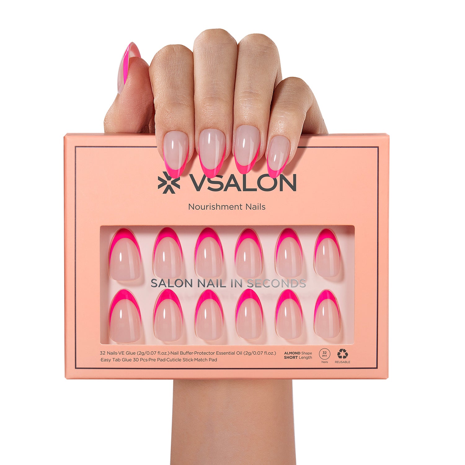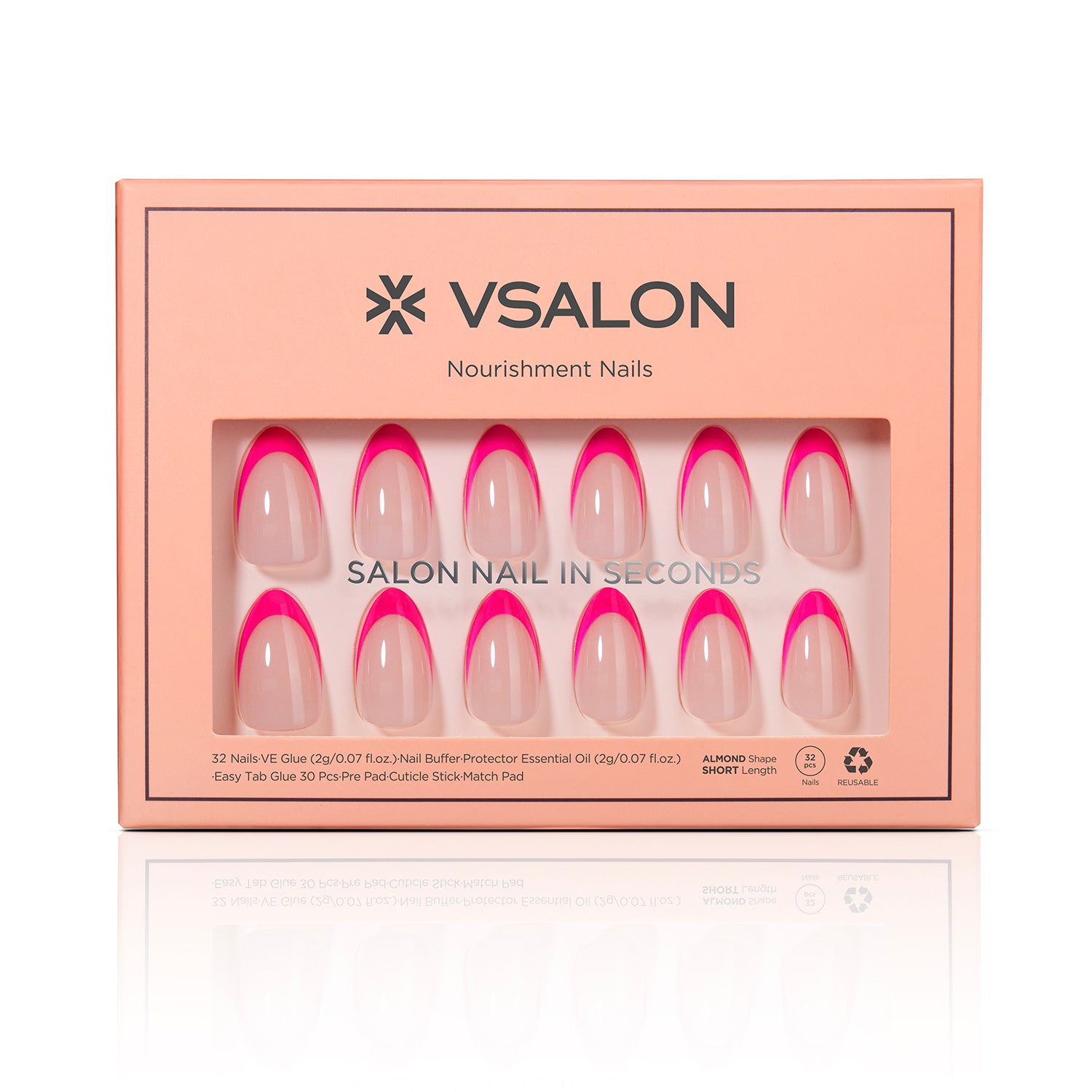 Fuchsia French Press On Nails - Short, Almond Shape |16 Sizes-32 Nails 2 Glues, Cuticle Oil