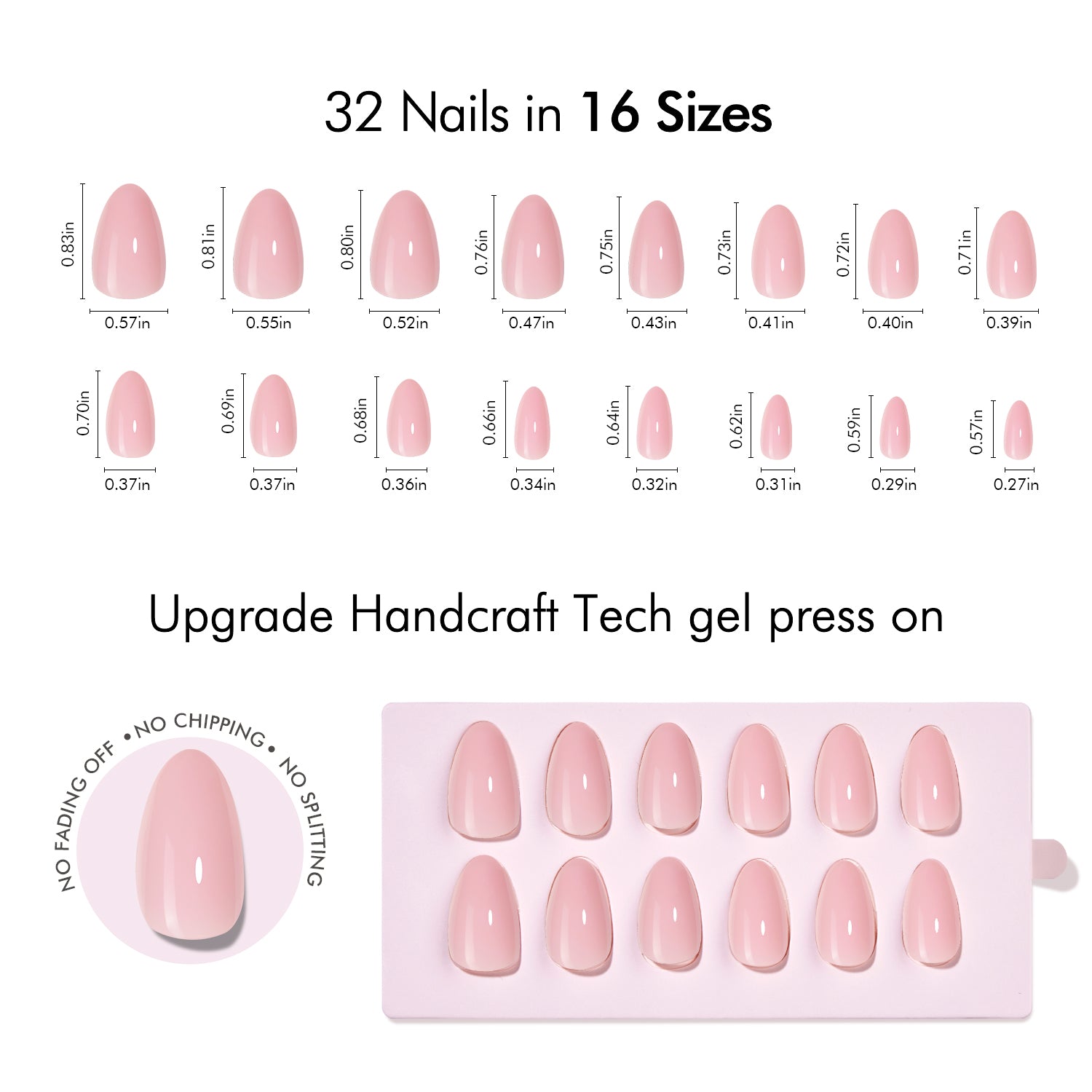 Top Rated Press On Nails Pink Short Nails |16 Sizes-32 Nails 3 Glues