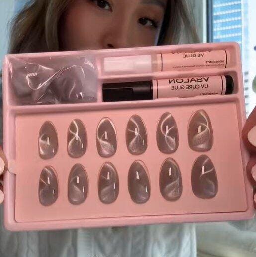 UV Cured Polar Press On Nails| 32 Nails in 16 Sizes, 2 Glues-up to 45 Days Wear