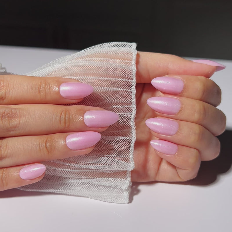 Short Pearl Almond Press On Nails Solid Soft Pink Color |16 Sizes-32 Nails 2 Glues, Cuticle Oil, Up to 2 Weeks Wear