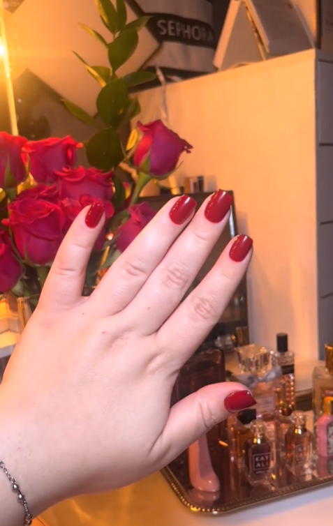 - Design:True Red · Squoval Shape · Short Length · Versatile & Festive