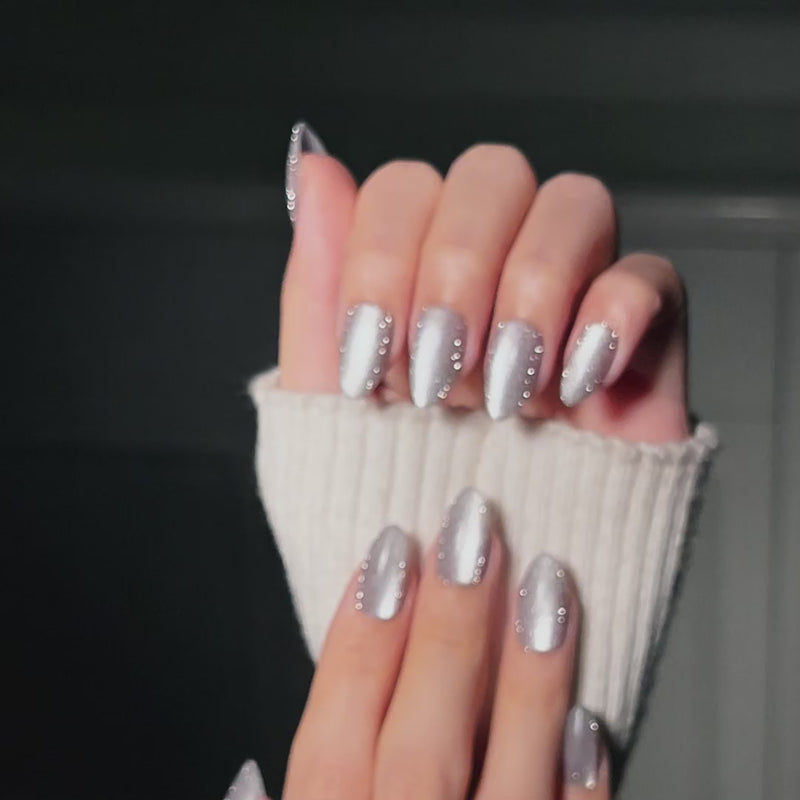 Best-Rated Short Glittering Press On Nails Silver Grey |16 Sizes-32 Nails 2 Glues, Cuticle Oil