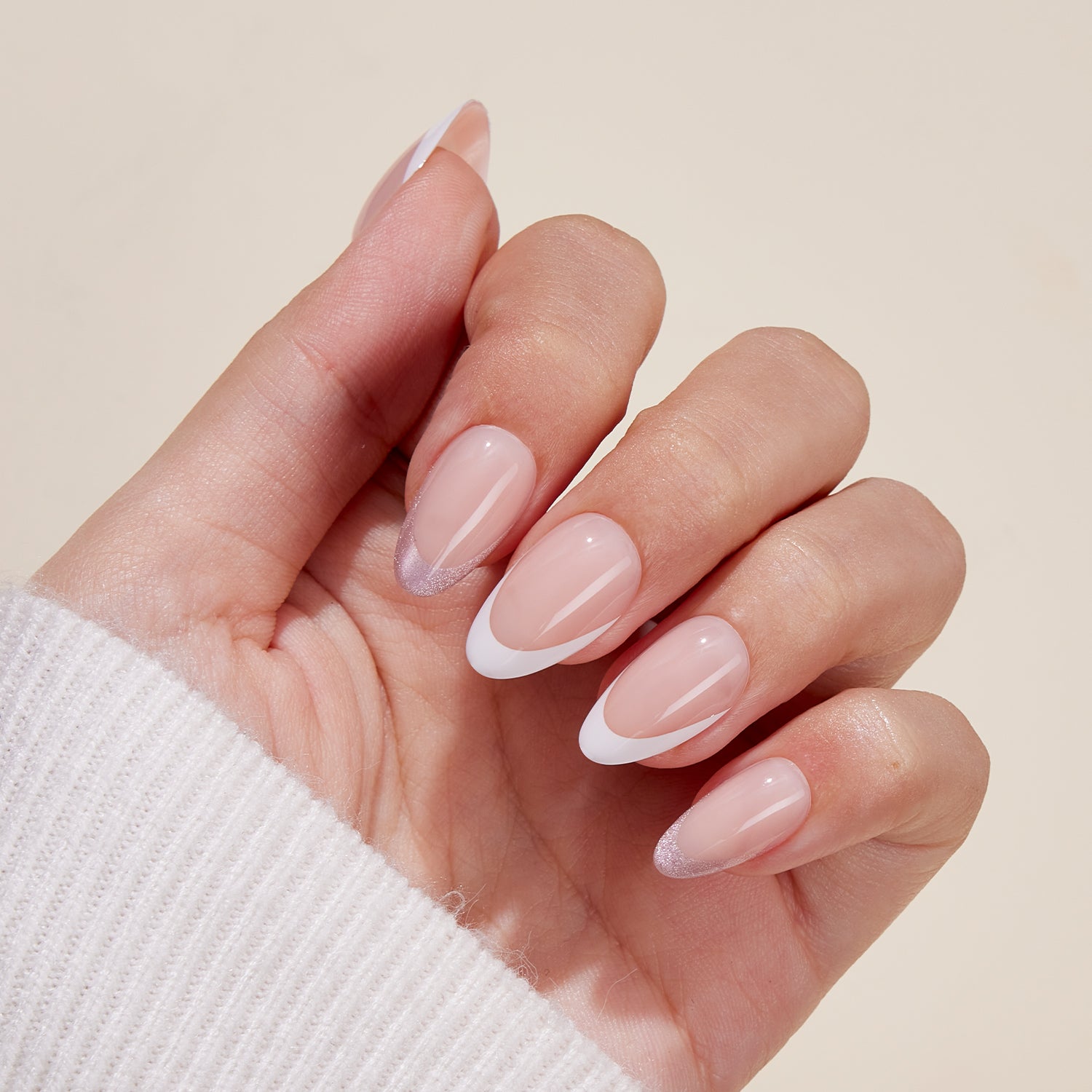 Press On Nails Short Glittering French Butterfly Accent |16 Sizes-42 Nails, 45+ Days Wear