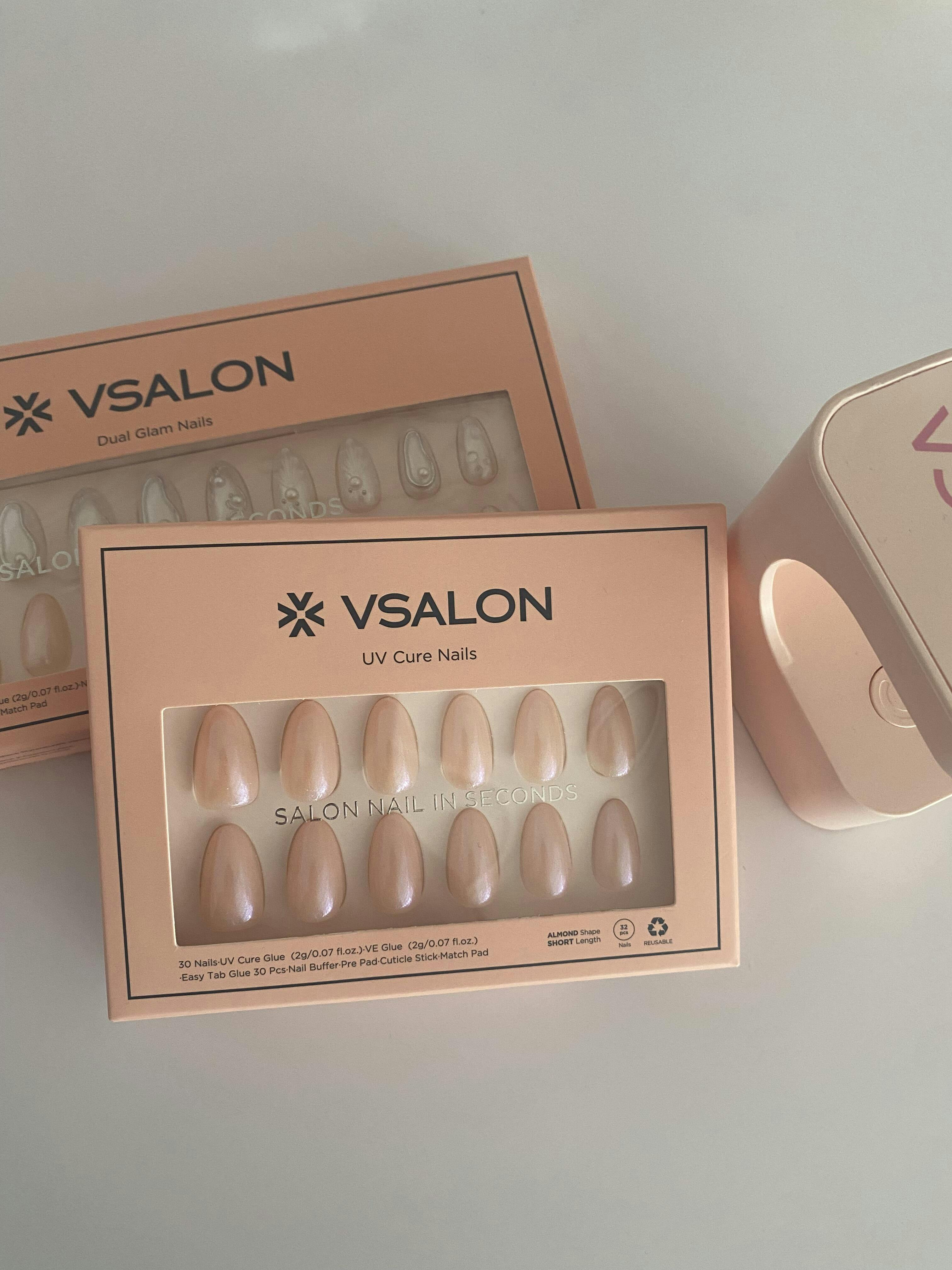 Crafted with 100% salon-grade UV gel, VSALON press-on nails deliver a glossy, professional finish that feels fresh from the salon. Enjoy a strong hold of up to 14 days with glue or a flexible 3-day wear with easy tabs—perfect for your weekly style refresh. Featuring ergonomic tapered edges, each nail blends seamlessly with your natural nail for a secure, bubble-free fit. Every set includes cuticle oil and essential tools to keep your nails healthy, hydrated, and protected.
