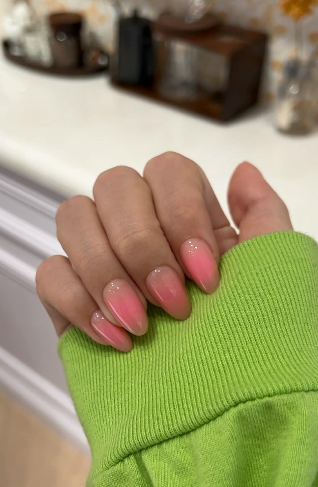 Pink Ombre Nails Press On Almond Short |16 Sizes-32 Nails 3 Glues