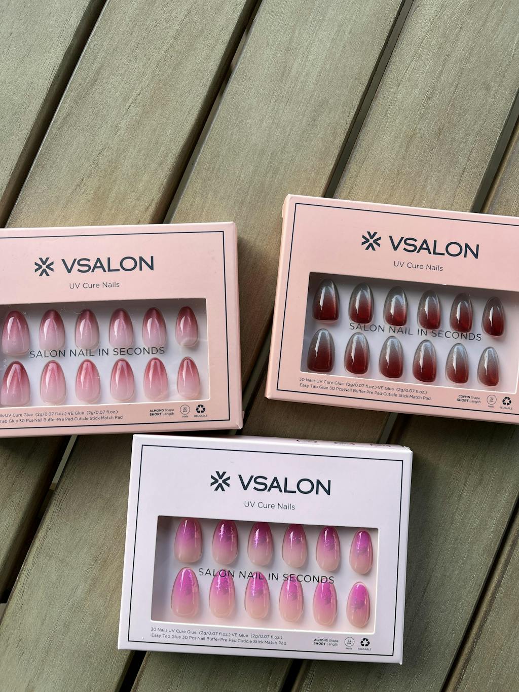 Crafted with 100% salon-grade UV gel, VSALON press-on nails deliver a glossy, professional finish that feels fresh from the salon. Enjoy a strong hold of up to 14 days with glue or a flexible 3-day wear with easy tabs—perfect for your weekly style refresh. Featuring ergonomic tapered edges, each nail blends seamlessly with your natural nail for a secure, bubble-free fit. Every set includes cuticle oil and essential tools to keep your nails healthy, hydrated, and protected.