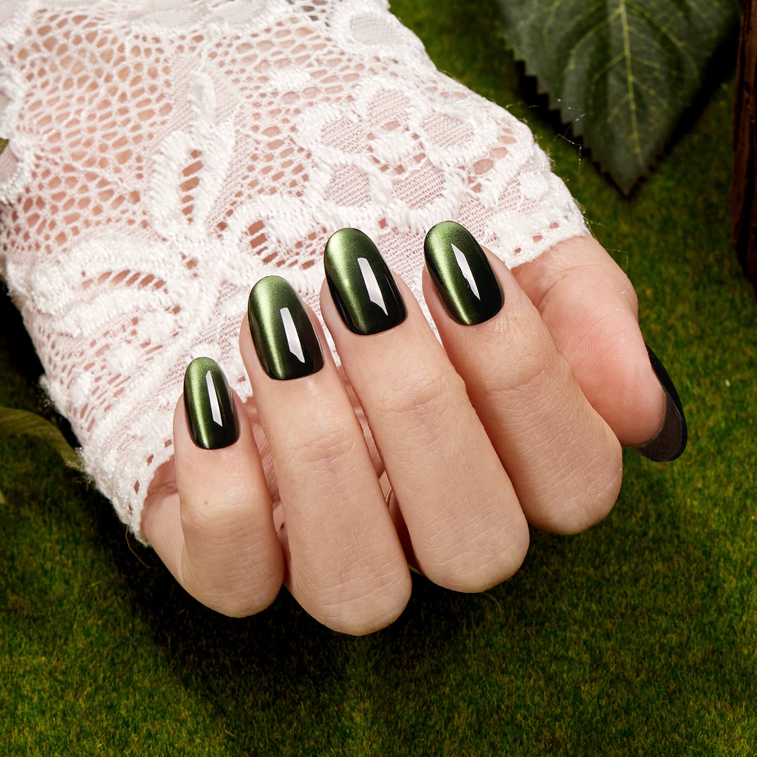 Emerald Green Cat Eye – Inspired by the deep sparkle of emeralds, these press-on nails feature a sleek cat-eye design that shimmers beautifully in the light. Perfect for adding a touch of refined elegance to everyday outfits or making a statement at special occasions, they effortlessly elevate your manicure with jewel-like sophistication.