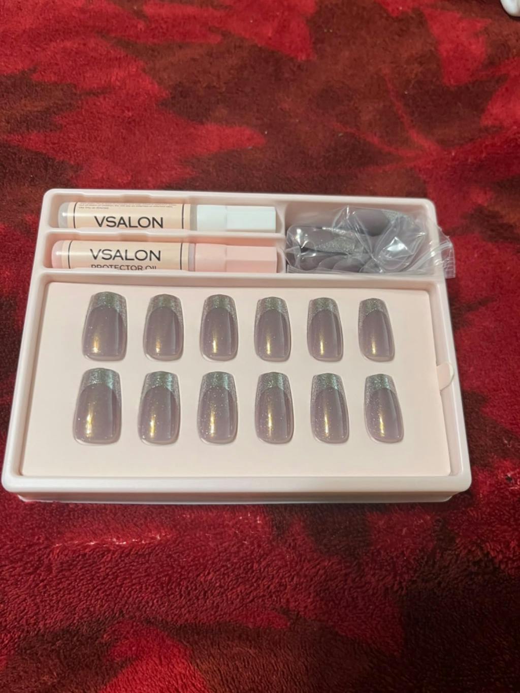 Crafted with 100% salon-grade UV gel, VSALON press-on nails deliver a glossy, professional finish that feels fresh from the salon. Enjoy a strong hold of up to 14 days with glue or a flexible 3-day wear with easy tabs—perfect for your weekly style refresh. Featuring ergonomic tapered edges, each nail blends seamlessly with your natural nail for a secure, bubble-free fit. Every set includes cuticle oil and essential tools to keep your nails healthy, hydrated, and protected.