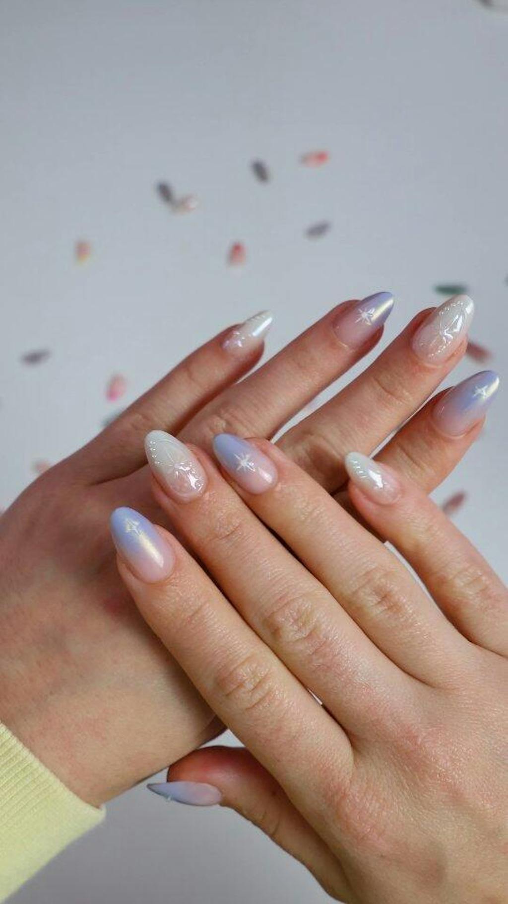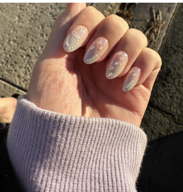 Gradient Stars & Pearl — A fresh, dreamy gradient design that blends soft hues with delicate star and pearl accents for a whimsical yet elegant finish. The gentle color transition and shimmering details make this set the perfect match for white lace dresses, wedding looks, resort vacations, or any occasion where you want a refined and effortless style. Whether you’re dressing up for an elegant brunch or a weekend getaway, these nails bring a radiant, versatile charm to every look.